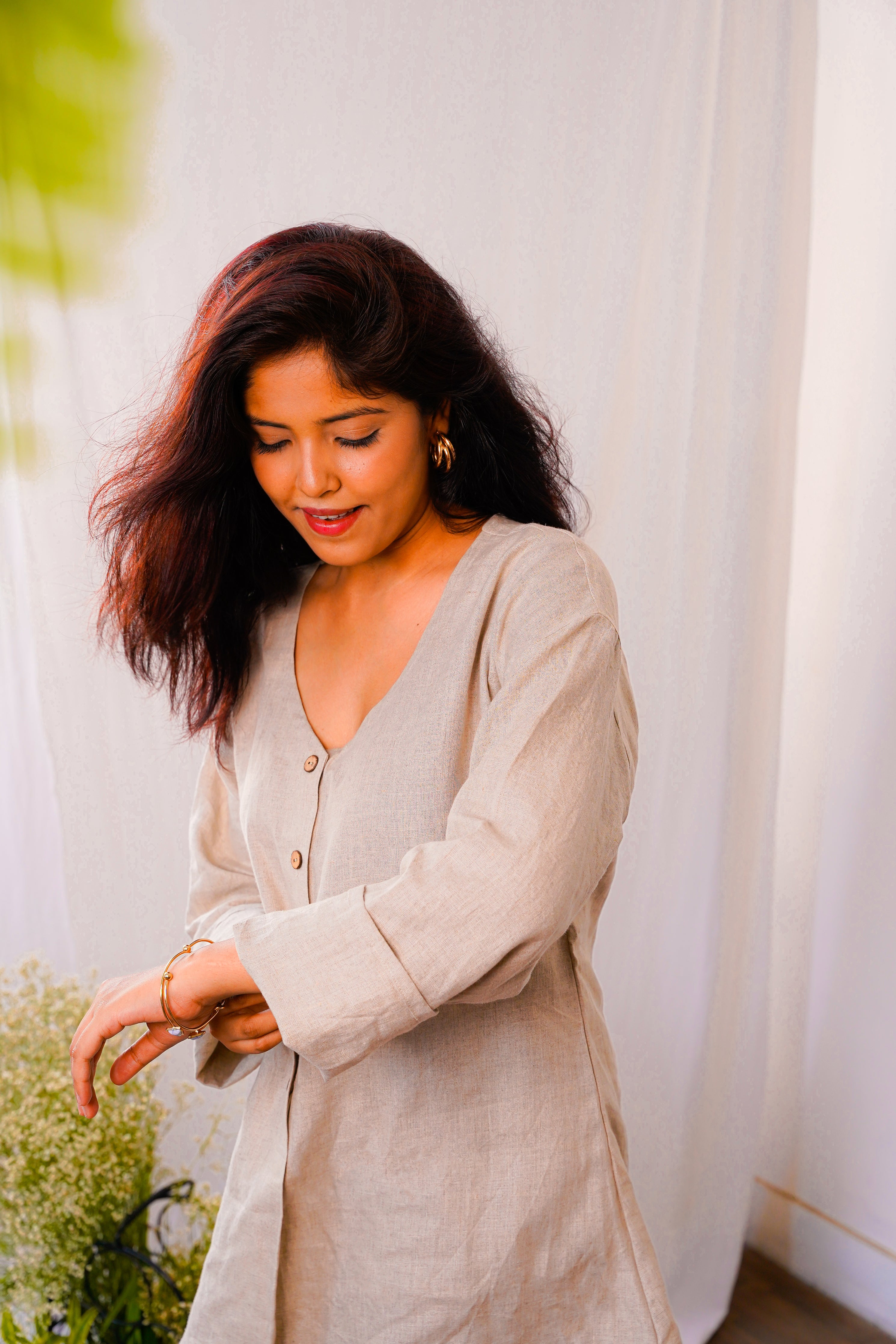 Half Buttoned Shirt Pure Linen Co-ord