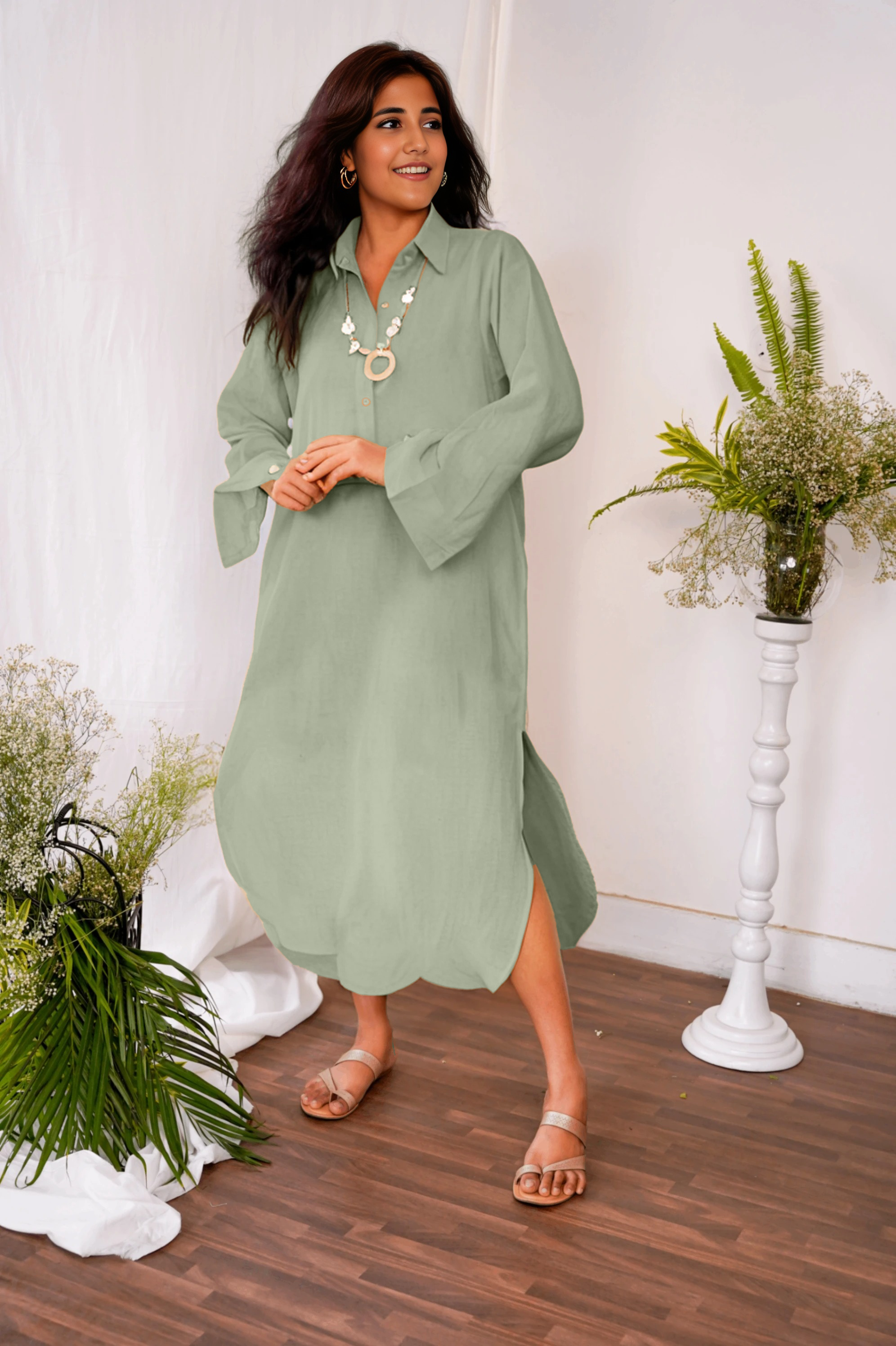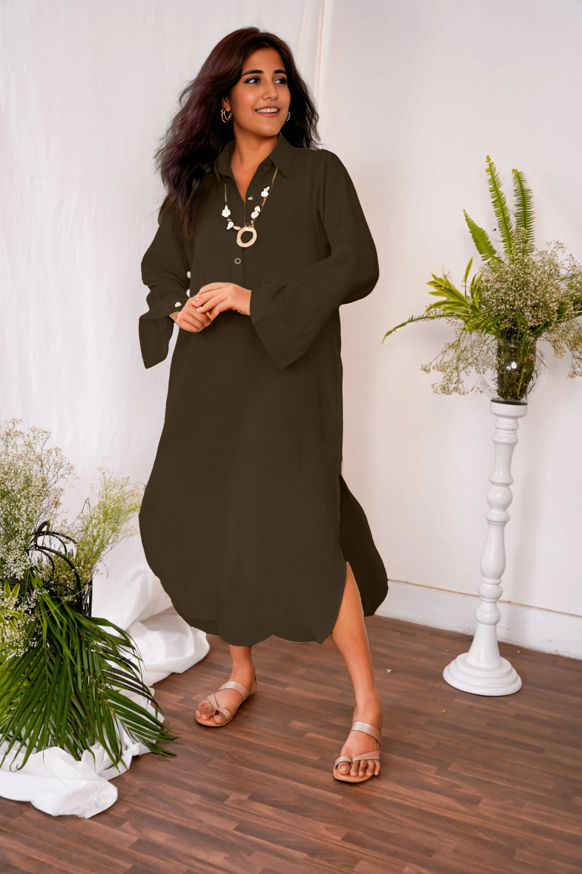 Keep it casual with this shirt dress or pair with a complementing jewellery for a formal look.